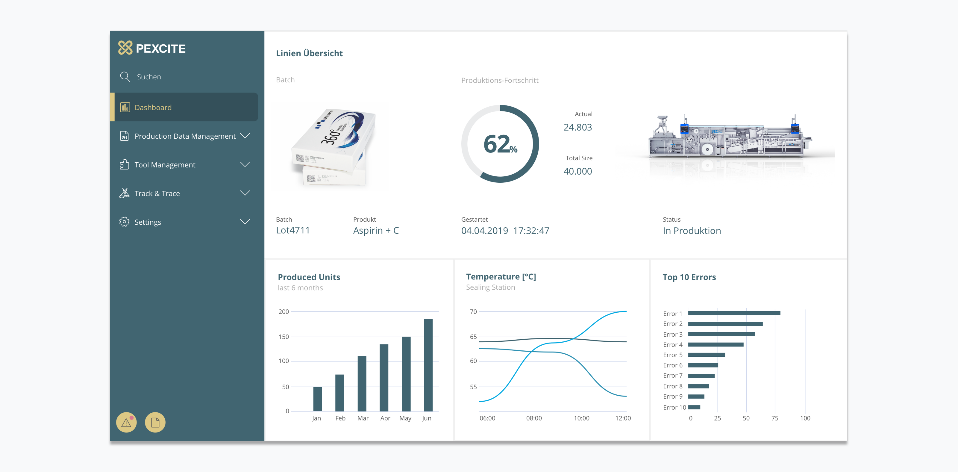 Die Pharmaindustrie und die Biotechbranche müssen die höchsten Standards erfüllen. Gleichzeitig sollen die sensiblen Produkte mit gleichbleibender Qualität hergestellt, sicher verpackt und zeitnah transportiert werden. Die Pexcite Plattform ist die technologische Basis für unterschiedliche digitale Lösungen. Zwischen den Lösungen können Daten ausgetauscht werden. Die Fertigung von sensiblen Produkten wird bestmöglich verwaltet. Man kann Pexcite am HMI der Maschine oder auf dem Tablet im Büro des Produktionsleiters aufrufen. Die Nutzerinnen und Nutzer werden durch die ausgefeilte User Experience des Systems bei ihren jeweiligen Tätigkeiten unterstützt.