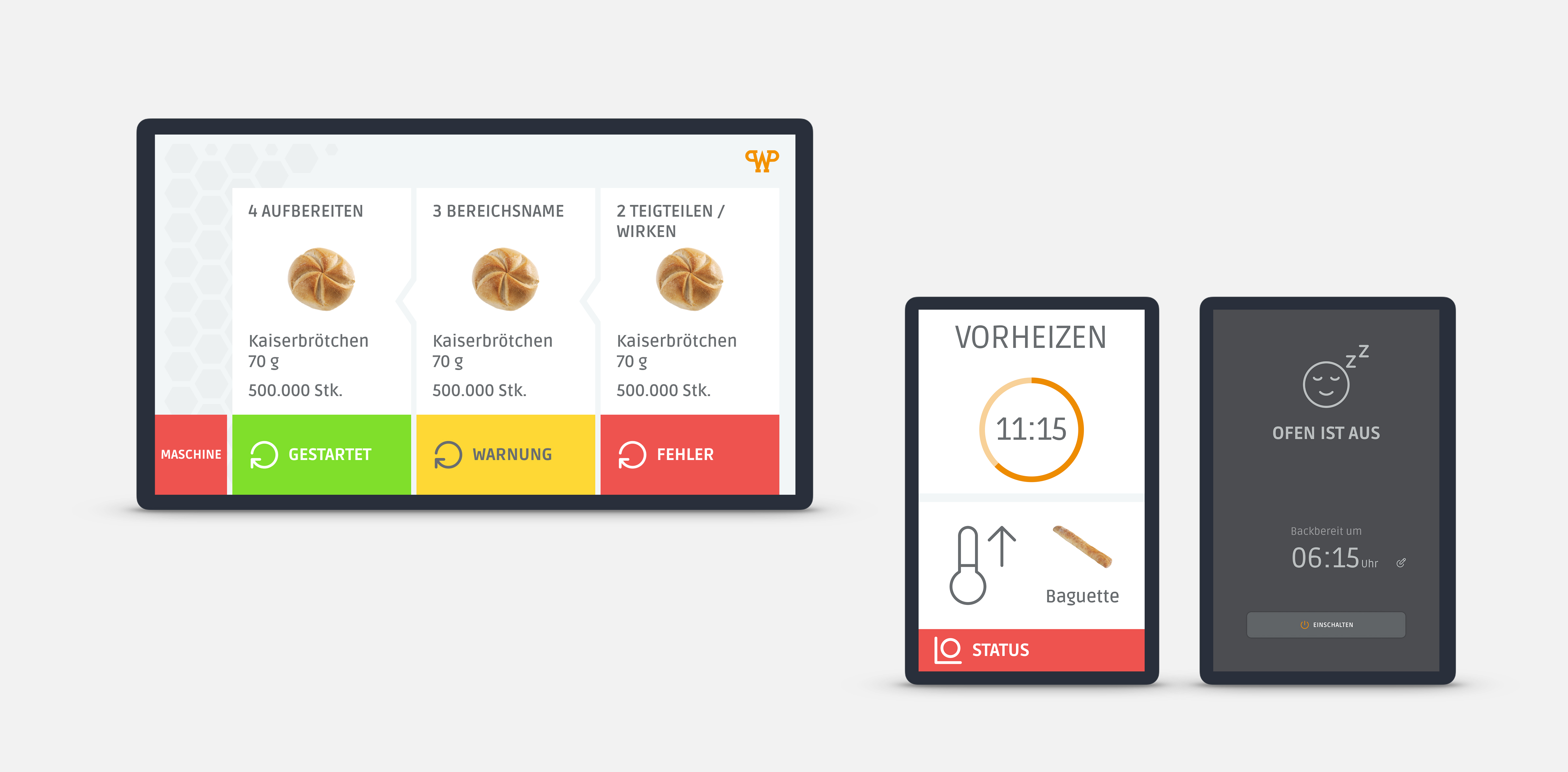 Für WP Kemper haben wir ein maschinenübergreifendes User Interface und Industrial-Design-Konzept für eine neue Generation von industriellen Bäckereianlagen entwickelt. Ziel war ein einheitliches, zukunftsfähiges Bedienkonzept, das große Produktionslinien ebenso abdeckt wie kompakte Backöfen – intuitiv, effizient und markenkonform.