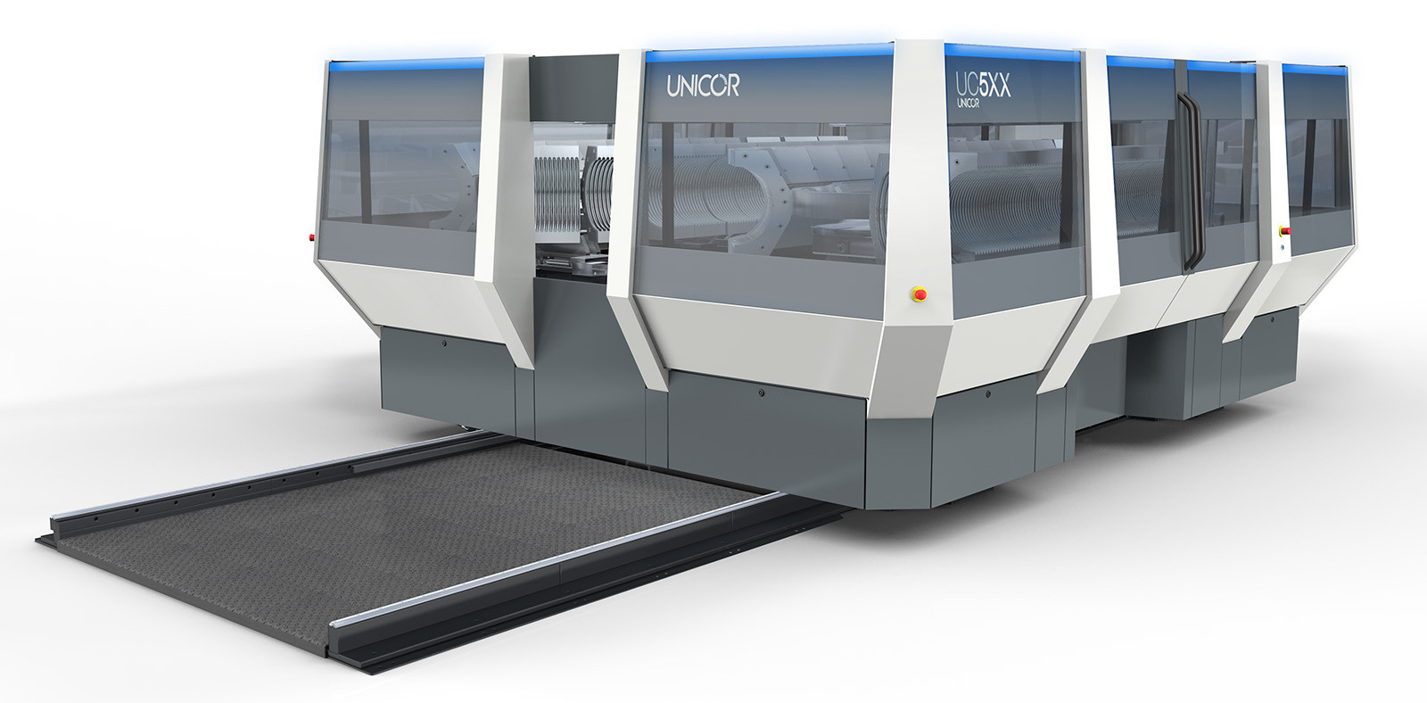 The fully automated production of corrugated pipes can be optimally monitored by the new industrial design. Generous window areas provide a comprehensive insight into the production process. The plant is characterised by the fact that very different pipe diameters can be produced in a previously unattained variety of sizes. Best possible accessibility guarantees this flexibility. The sliding door can be opened particularly wide and the machine cover is adjustable in length. The design makes the quality of the proven Unicor production technology tangible and innovations become visible.
